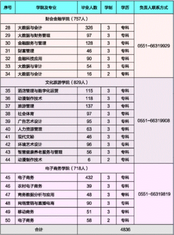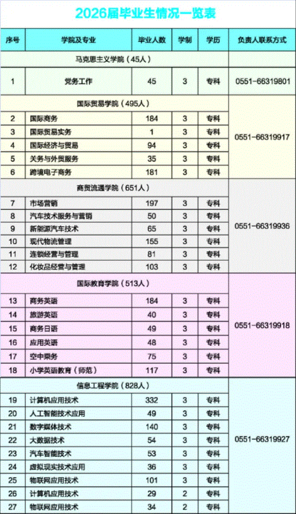 安徽国际商务职业学院2026届毕业生共4836人,详情见下图: