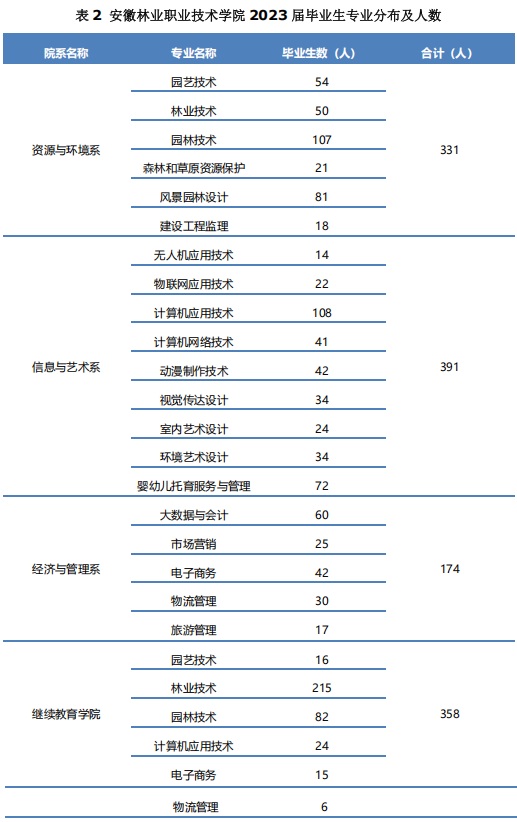 安徽林业职业技术学院2023届毕业生共1254人,详情见下图: