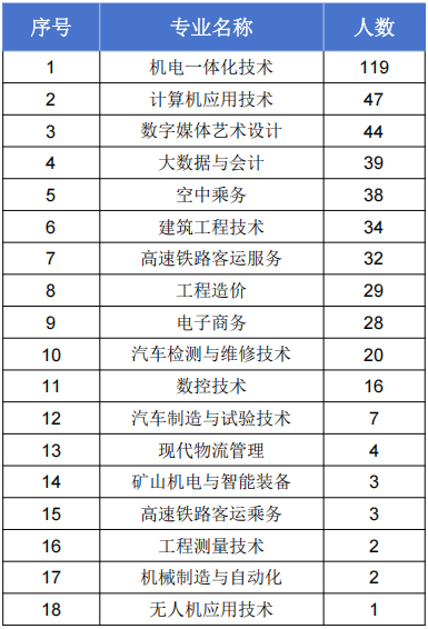 安徽矿业职业技术学院2024届毕业生共468人,详情见下图: