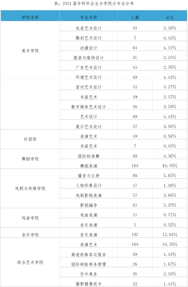 安徽艺术职业学院2024届毕业生共1558人,详情见下图: