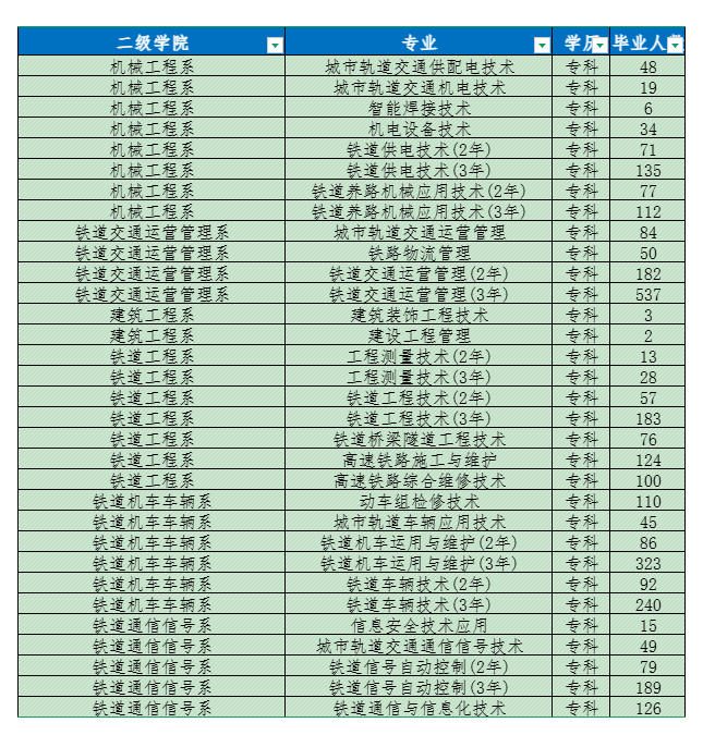 包头铁道职业技术学院2025届毕业生共3295人,详情如下: