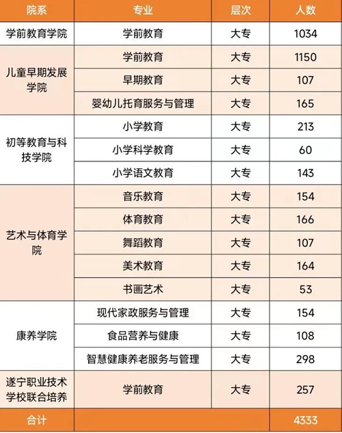 川南幼儿师范高等专科学校2026届生源信息 链接:川南幼儿师范高等专科学校2026届生源信息 川南幼儿师范高等专科学校2025届毕业生共4333人,详情见下图: 推荐阅读川南幼儿师范高等专科学校就业指导中心联系方式 四川生源信息查询系统