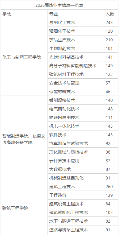 常州工程职业技术学院2026届毕业生共4927人,详情如下: