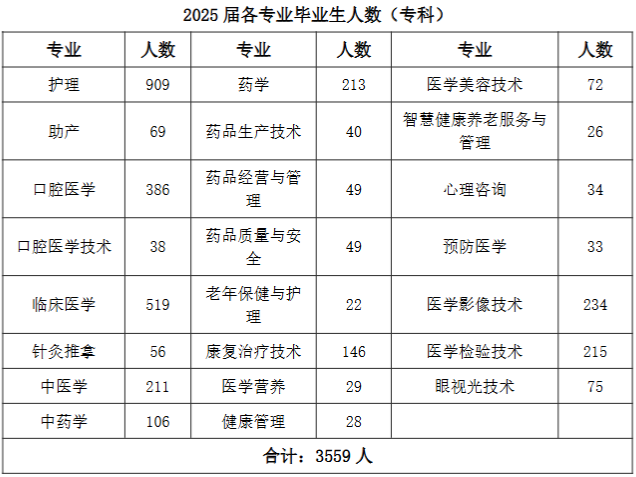 沧州医学高等专科学校2025届毕业生共4089人,详情如下: