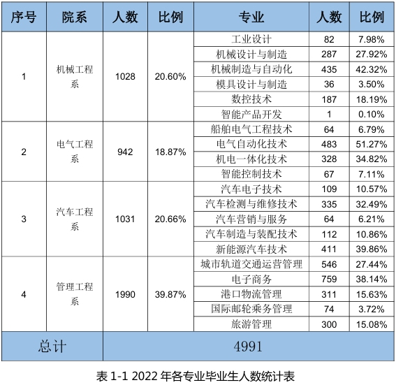 大连装备制造职业技术学院2022届毕业生共4991人,详情如下: