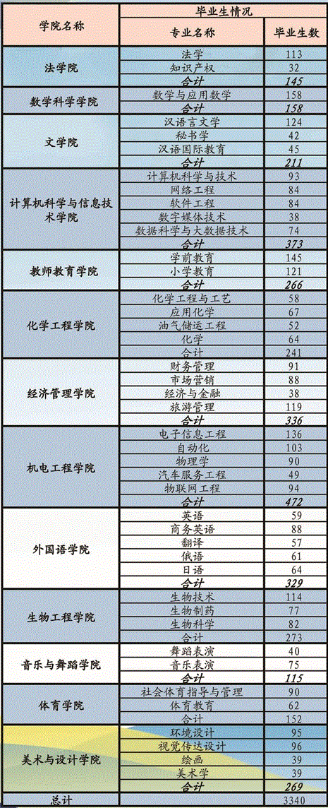 大庆师范学院2025届毕业生共3340人,详情见下图: