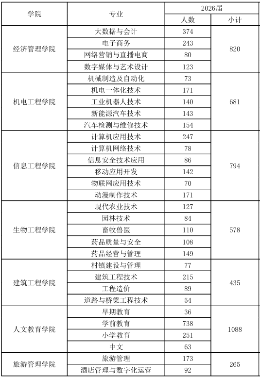 恩施职业技术学院2026届毕业生共4661人,详情见下图: