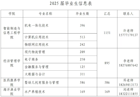 防城港职业技术学院2025届毕业生共2801人,详情见下图: