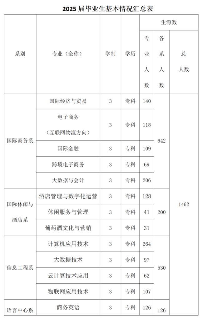 福州墨尔本理工职业学院2025届毕业生共1462人,详情见下图: