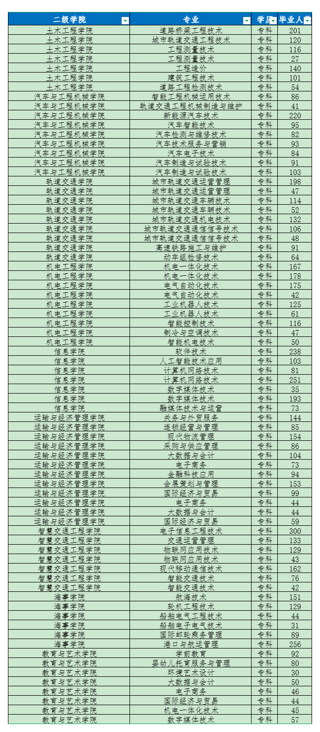 广东交通职业技术学院2026届生源信息 链接:广东交通职业技术学院2026届生源信息 广东交通职业技术学院2025届毕业生共7609人,详情见下图: 推荐阅读广东交通职业技术学院就业指导中心联系方式广东高校生源信息查询系统