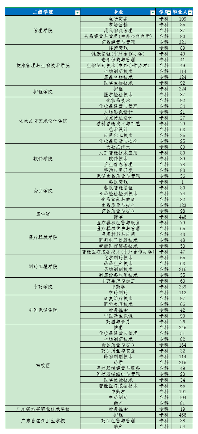广东食品药品职业学院2025届毕业生共6704人,详情请查看下图: