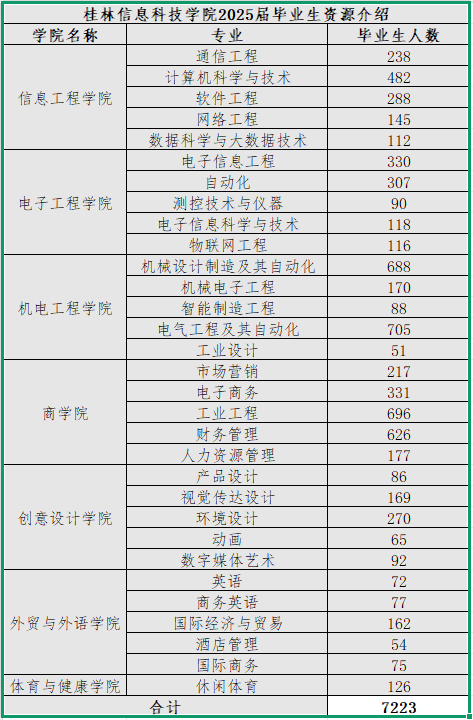 桂林信息科技学院2026届生源信息 桂林信息科技学院2026届毕业生共6623人,详情见下方链接: 链接:桂林信息科技学院2026届毕业生生源信息 桂林信息科技学院2025届毕业生共7223人,详情见下图: 推荐阅读桂林信息科技学院就业指导中心联系方式广西生源信息查询系统