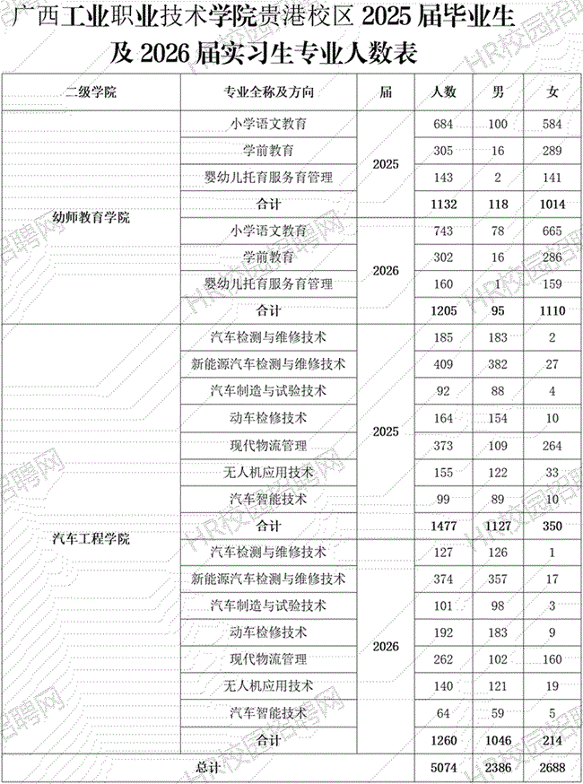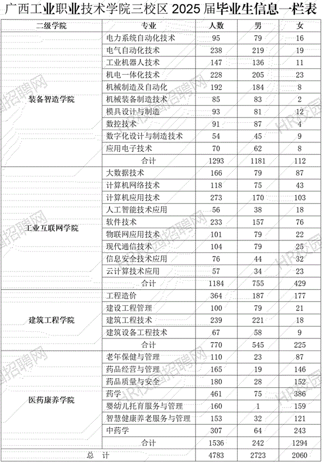 广西工业职业技术学院南宁三校区2025届毕业生共4783人,详情见下图: