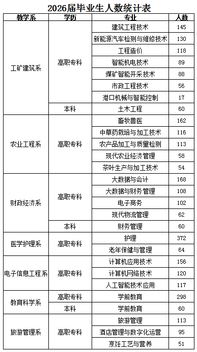 毕节职业技术学院2026届生源信息 毕节职业技术学院2026届毕业生共3149人,详情见下图: 毕节职业技术学院2025届毕业生共2860人,详情见下图: 推荐阅读毕节职业技术学院就业指导中心联系方式贵州生源信息查询系统