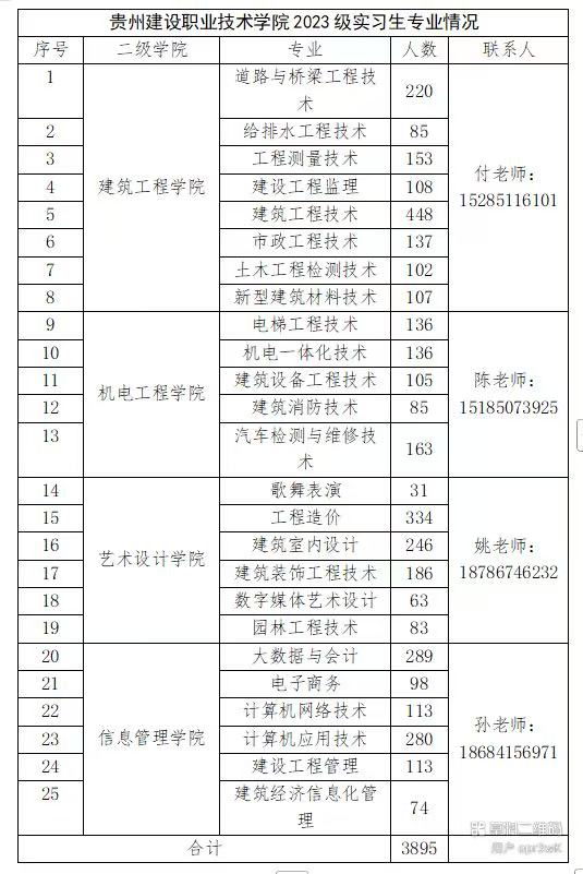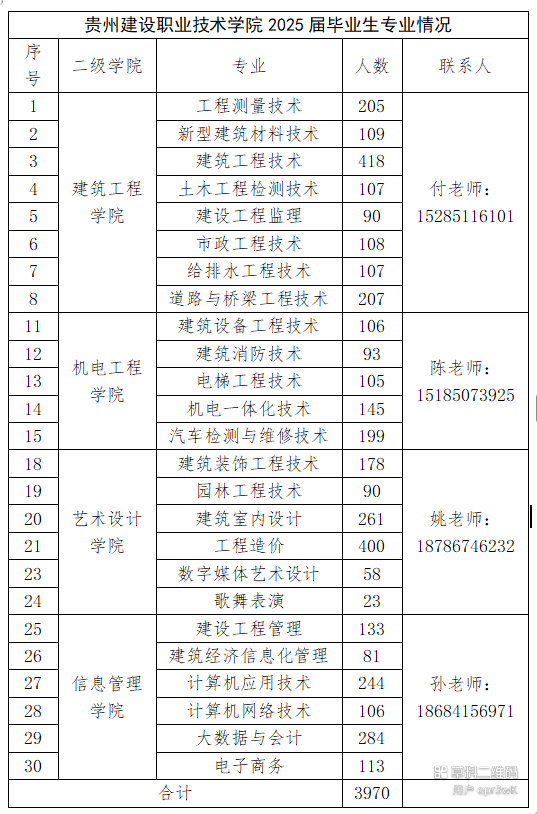 贵州建设职业技术学院2026届生源信息 贵州建设职业技术学院2026届毕业生共3895人,详情见下图: 贵州建设职业技术学院2025届毕业生共3970人,详情见下图: 推荐阅读贵州建设职业技术学院就业指导中心联系方式 贵州生源信息查询系统