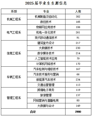 贵州机电职业技术学院2025届毕业生共2900人,详情见下图: