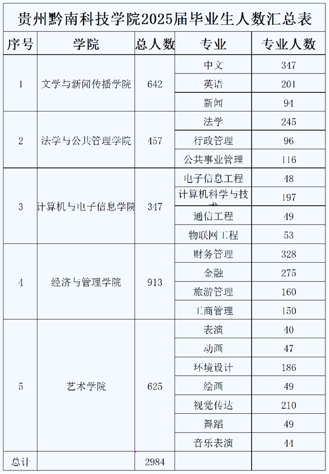 贵州黔南科技学院2025届毕业生共2984人,详情见下图: