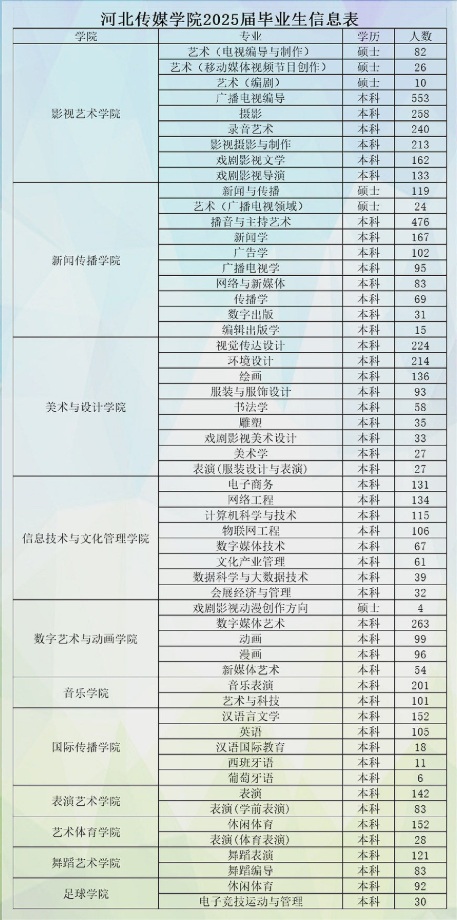 河北传媒学院2025届毕业生共6231人,详情见下图: