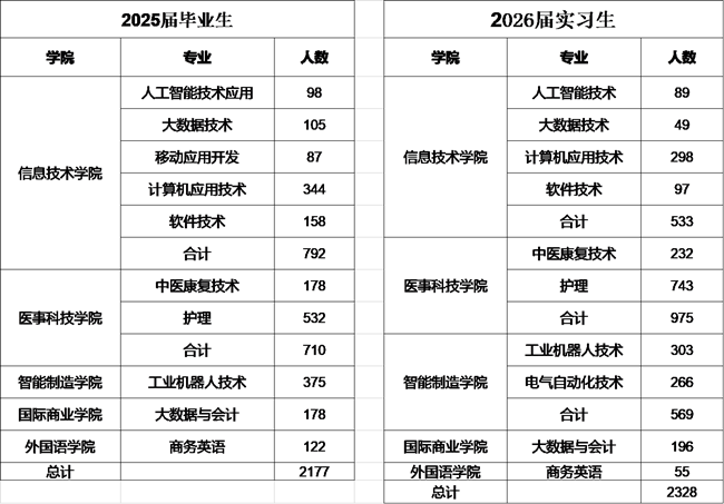 湖北孝感美珈职业学院2026届毕业生共2328人,2025届毕业生共2177人,详情见下图: