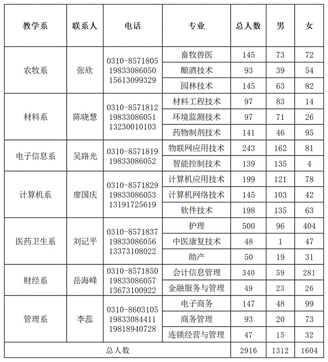 邯郸科技职业学院2025届毕业生共2916人,其中,女生1604人,男生1312人,详情见下图: