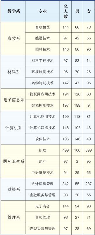 邯郸科技职业学院2026届毕业生共3119人,其中,女生1752人,男生1367人,详情见下图: