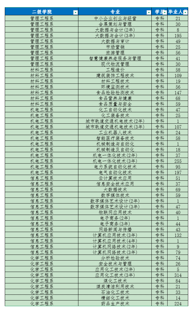 内蒙古化工职业学院2026届生源信息 内蒙古化工职业学院2026届毕业生共3920人,其中,女生1086人,男生2467人,详情点击查看:内蒙古化工职业学院2026年毕业生信息 内蒙古化工职业学院2025届毕业生共3244人,详情如下: 推荐阅读内蒙古化工职业学院就业指导中心联系方式 内蒙古生源信息查询系统