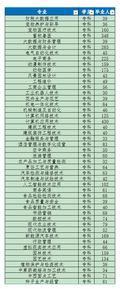 河南农业职业学院2025届毕业生共4317人,详情见下图: