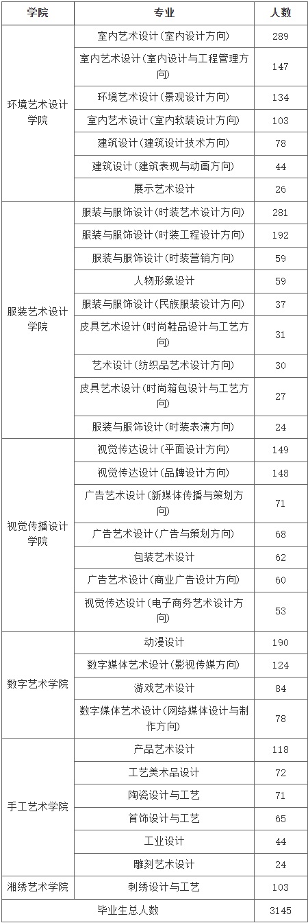 湖南工艺美术职业学院2025届毕业生共3145人,详情见下图: