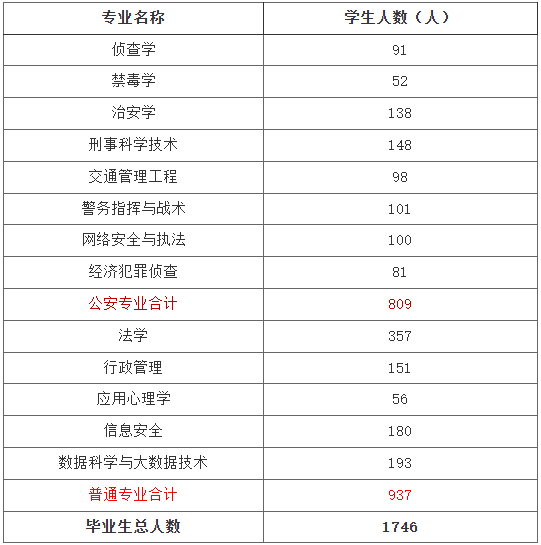 湖南警察学院2025届毕业生共1746人,详情见下图: