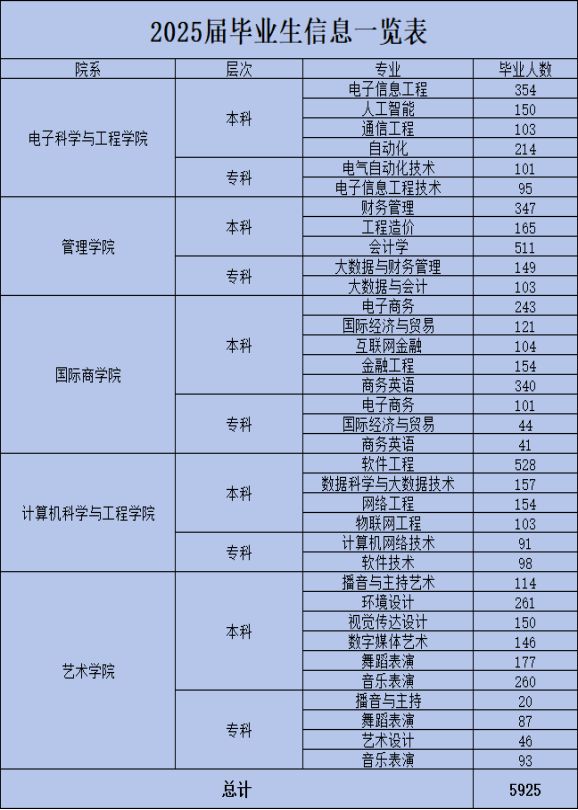 湖南信息学院2025届毕业生共5925人,详情见下图: