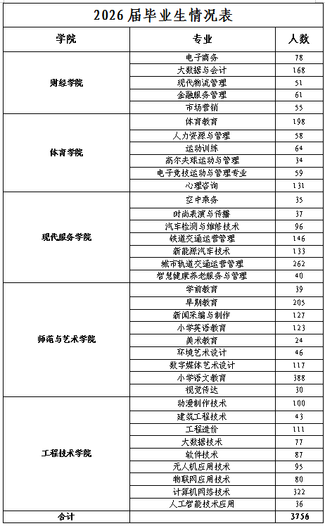 哈尔滨科学技术职业学院2026届生源信息 哈尔滨科学技术职业学院2026届毕业生共3756人,详情见下图: 哈尔滨科学技术职业学院2025届毕业生共2549人,详情见附件: 附件:哈尔滨科学技术职业学院2025届生源信息.xls