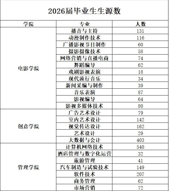 哈尔滨传媒职业学院2026届生源信息 哈尔滨传媒职业学院2026届毕业生共2741人,详情见下图: 哈尔滨传媒职业学院2025届毕业生共1268人,详情见下图: 推荐阅读哈尔滨传媒职业学院就业指导中心联系方式黑龙江生源信息查询系统