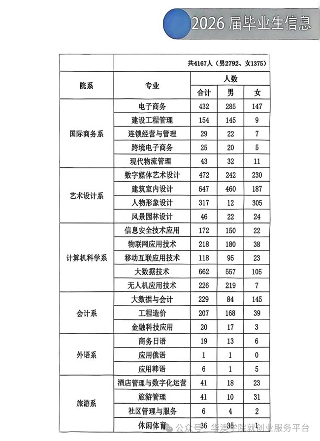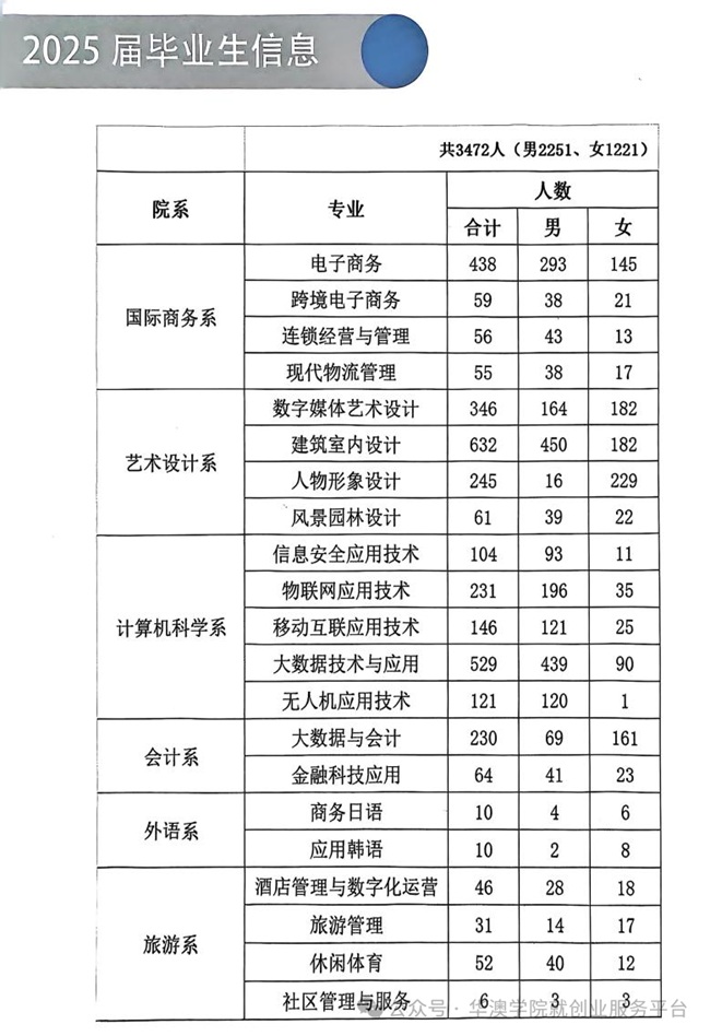 山西华澳商贸职业学院2026届生源信息 我院2026届实习生共4167人,详情如下: 我院2025届毕业生共3472人,详情如下: 推荐阅读山西华澳商贸职业学院就业指导中心联系方式 山西生源信息查询系统