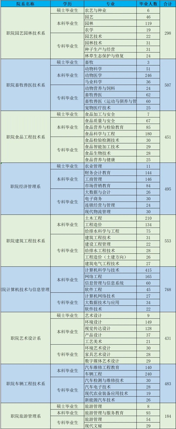 内蒙古农业大学职业技术学院2025届毕业生共4170人,详情见下图: