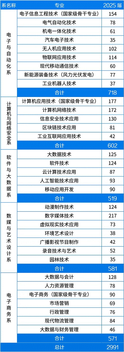 内蒙古电子信息职业技术学院2025届毕业生2991人,详情如下: