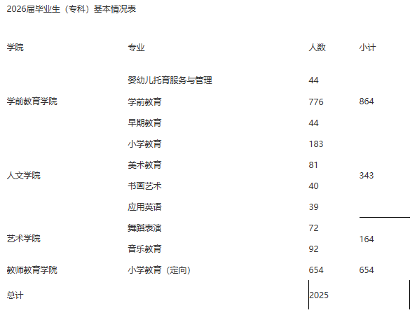 吉安幼儿师范高等专科学校2026届毕业生共2025人,详情见下图: