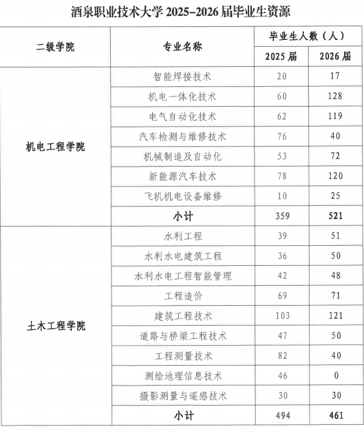 酒泉职业技术大学2026届毕业生共4242人,详情如下: