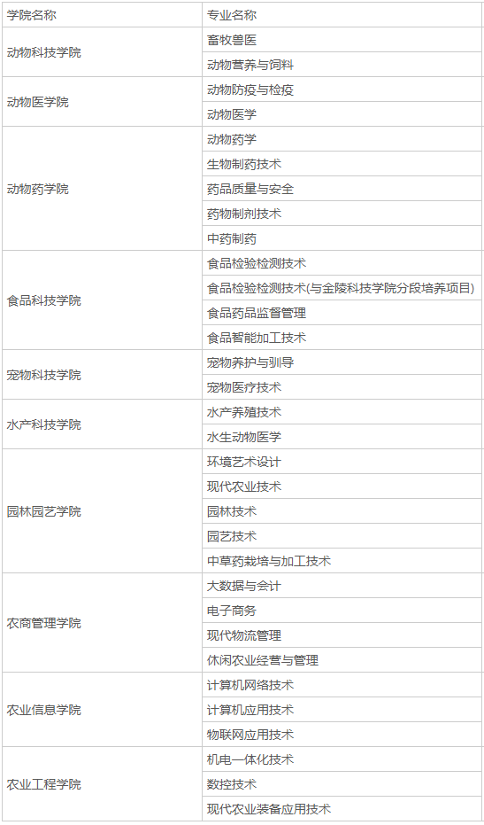 江苏农牧科技职业学院2025届毕业生专业分布见下图: