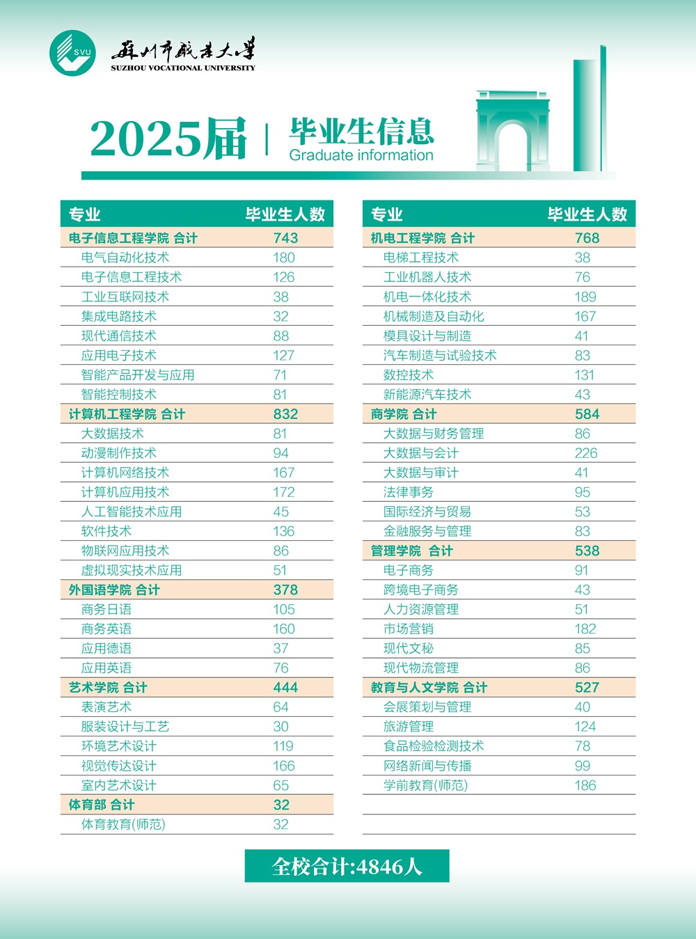苏州职业技术大学2026届生源信息 链接:苏州职业技术大学2026届生源信息 苏州市职业大学2025届毕业生共4846人,详情见附件: 附件:苏州市职业大学2025届毕业生生源信息.jpg 推荐阅读苏州市职业大学就业指导中心联系方式江苏生源信息查询系统