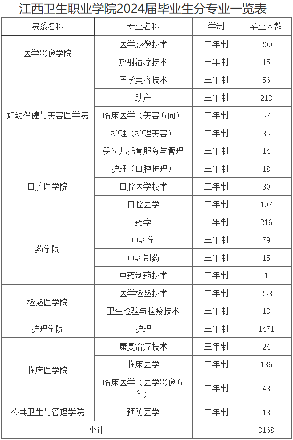 江西卫生职业学院2024届毕业生共3168人,详情见下图: