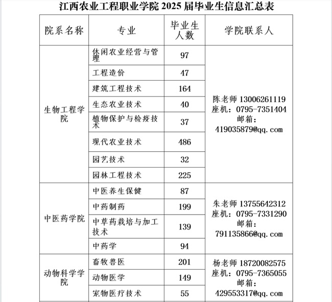 江西农业工程职业学院2025届毕业生共4543人,详情如下: