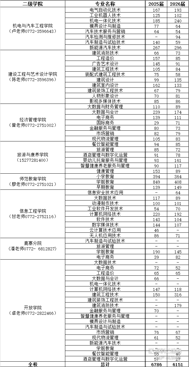 柳州城市职业学院2026届毕业生共6151人,详情见下图:
