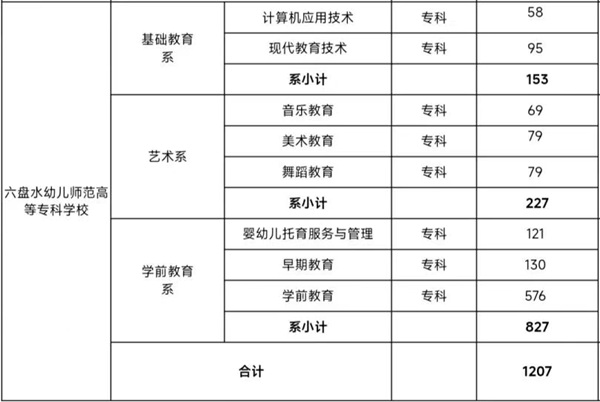 六盘水幼儿师范高等专科学校2025届毕业生共1207人,详情如下: