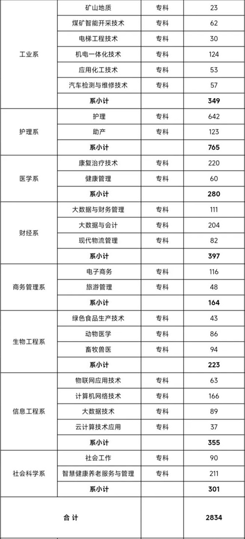 六盘水职业技术学院2025届毕业生共2834人,详情见下图: