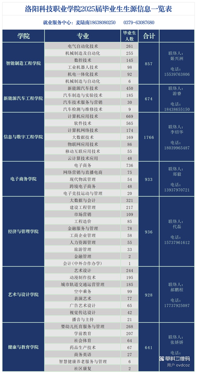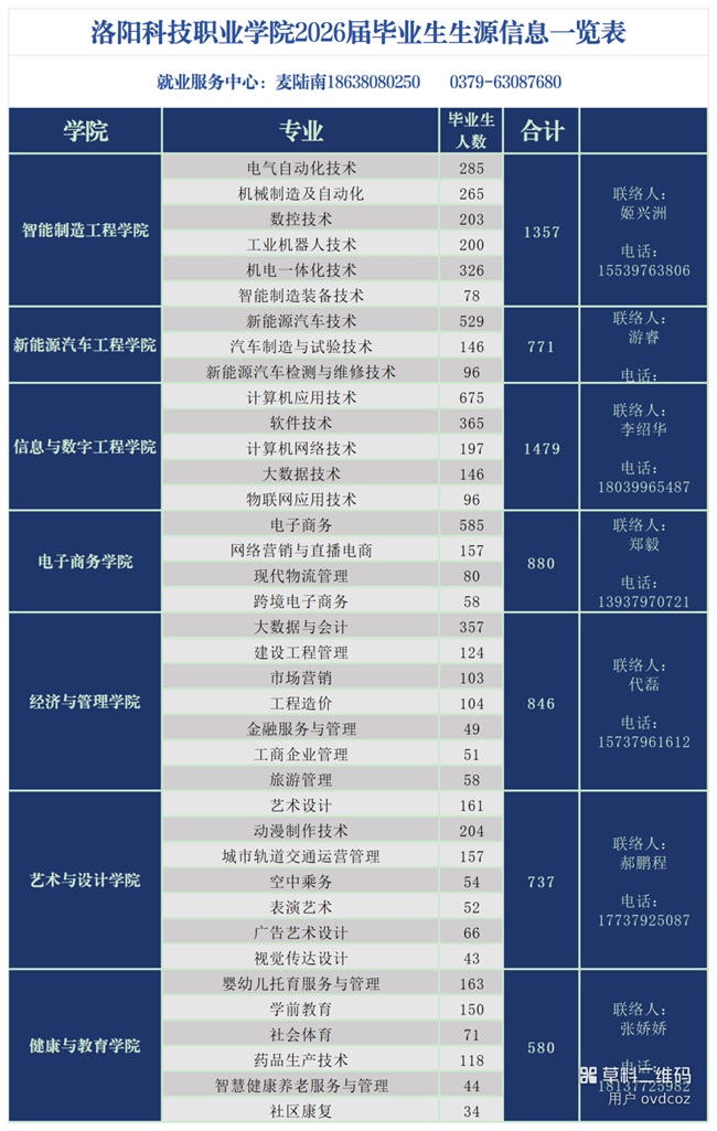 洛阳科技职业学院2026届毕业生共6650人,详情如下:
