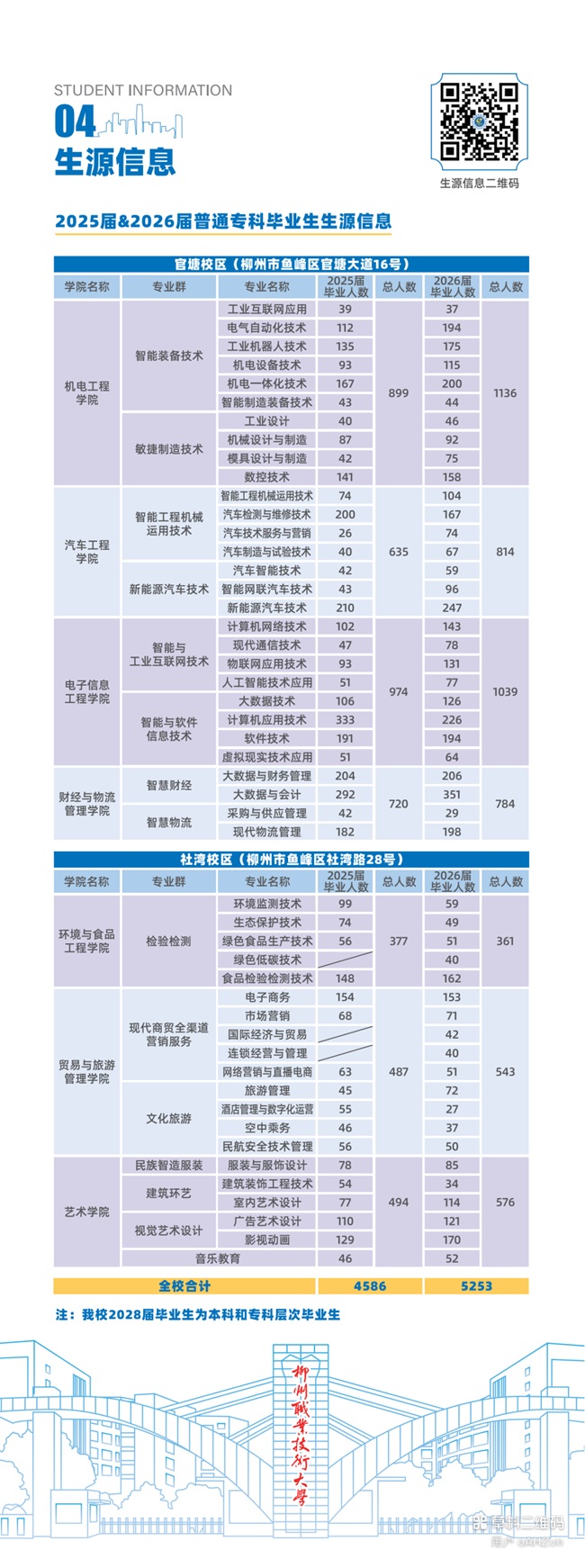 柳州职业技术大学2026届毕业生共5253人,2025届毕业生共4586人,详情见下图: