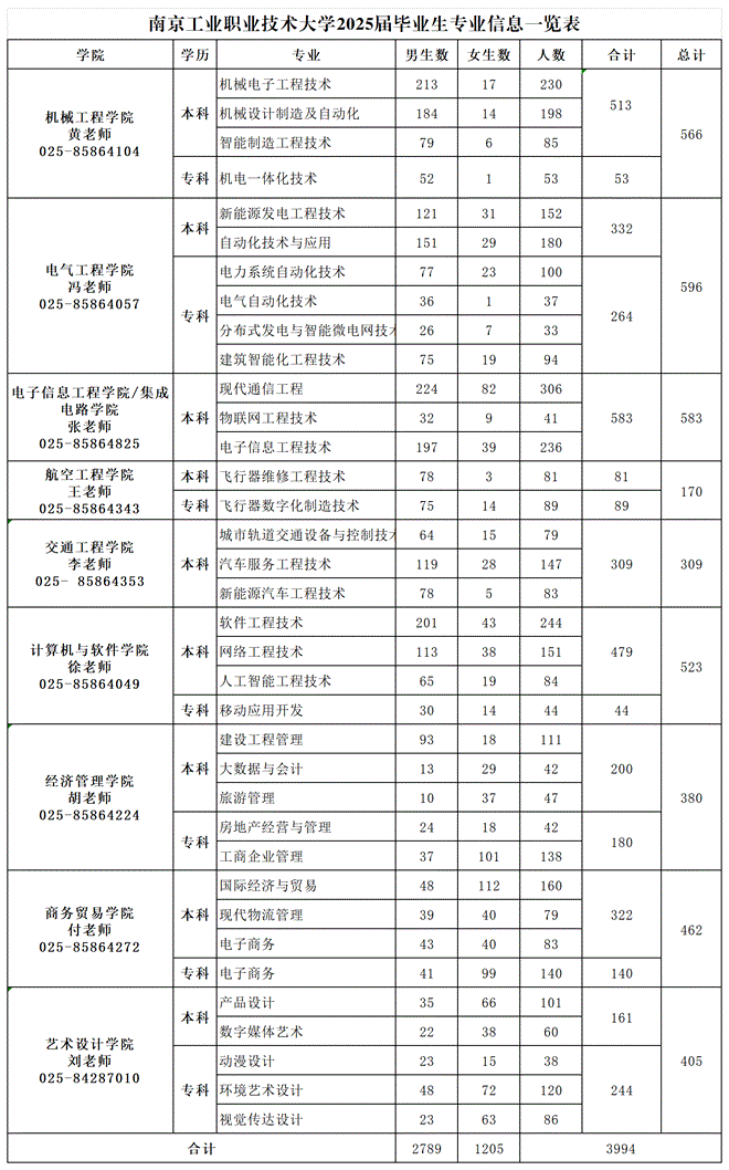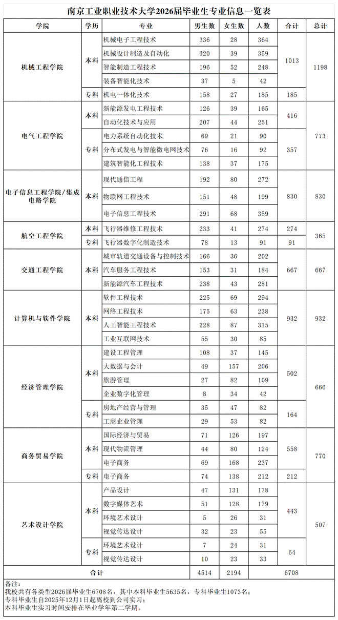 南京工业职业技术大学2026届生源信息 南京工业职业技术大学2026届毕业生共6708人,其中,女生2194人,男生4514人,详情见下图: 链接:南京工业职业技术大学2026届生源信息 南京工业职业技术大学2025届毕业生共3994人,其中,女生1205人,男生2789人,详情见下图: 推荐阅读南京工业职业技术大学就业指导中心联系方式江苏生源信息查询系统