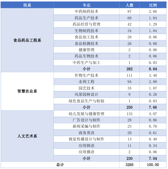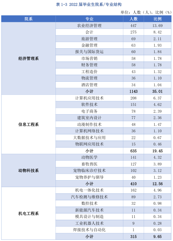 黑龙江农业经济职业学院2022届毕业生共3265人,详情见下图: