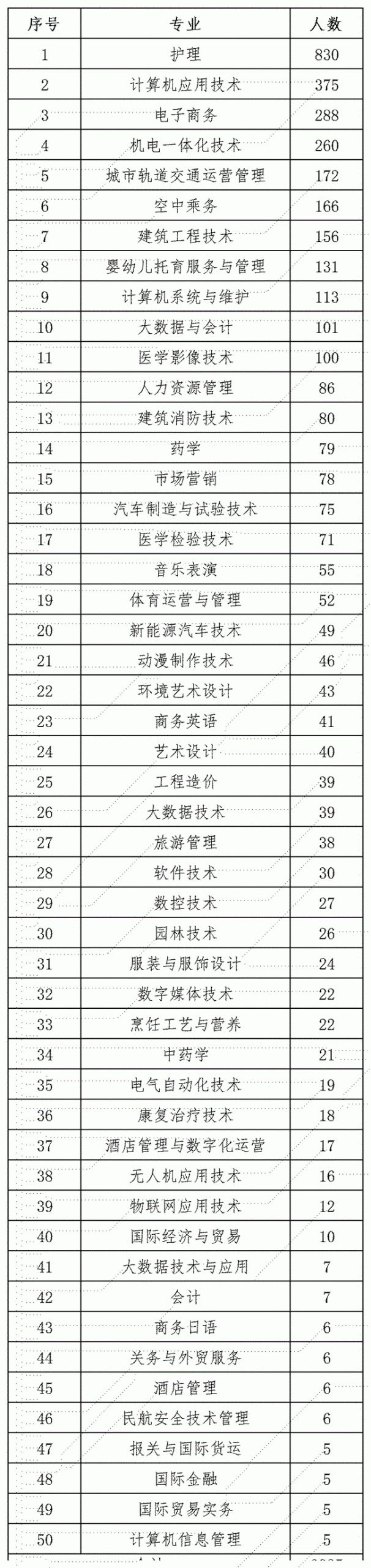 青岛求实职业技术学院2024届毕业生共3925人,详情如下: