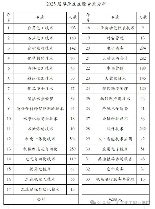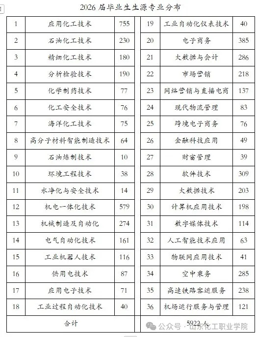 山东化工职业学院2026届生源信息 山东化工职业学院2026届毕业生共5922人,详情见下图: 山东化工职业学院2025届毕业生共4288人,详情见下图: 推荐阅读山东化工职业学院就业指导中心联系方式山东生源信息查询系统